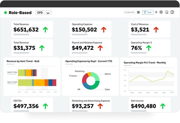 GenAI auto-populates internal and external reports to create role-based dashboards, financial statements, multi-entity reports, and more.